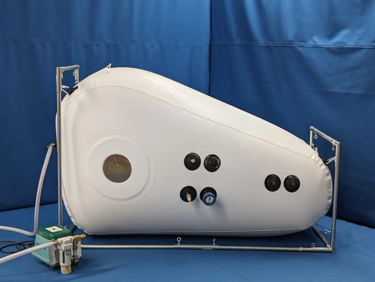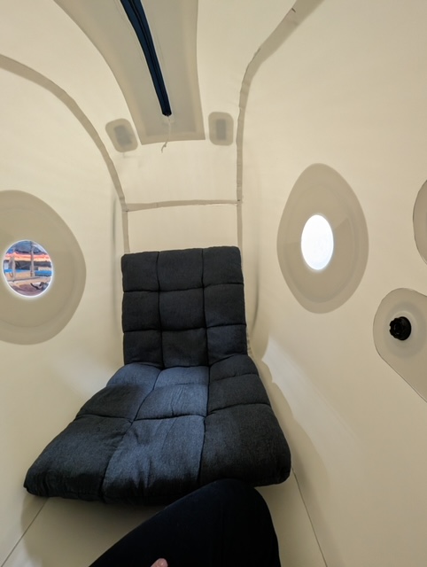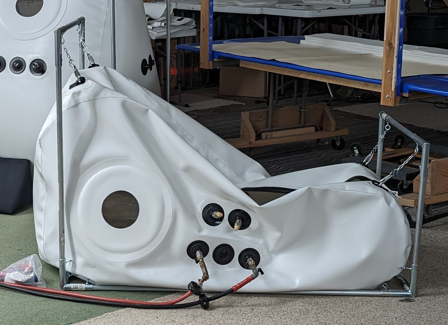 At full inflation, it is 40” high, 28” + wide, and 72” long. A chair is not included but a legless gaming chair will work great inside this chamber.